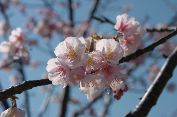 - 町内を流れる那賀川・岩科川沿いには、多くの桜が植えられています。 寒桜は見頃をすぎてしまいましたが、早咲きの桜が咲き始めました。