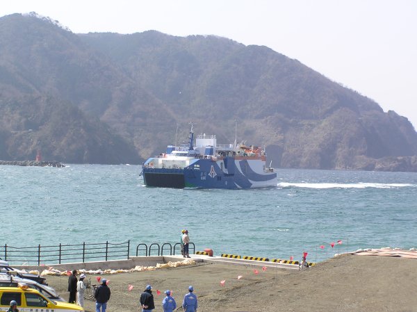 - 清水港から航海し、松崎新港に接岸しました。