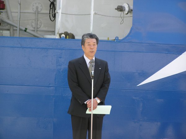 - 船長への花束贈呈や松崎町長の歓迎挨拶などセレモニーが行なわれました。