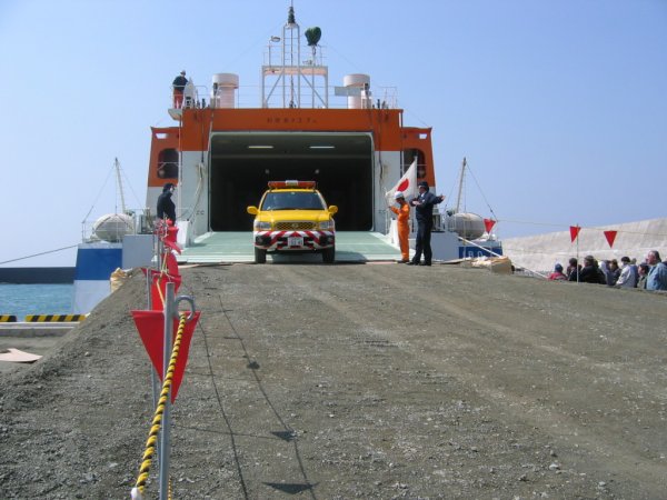 - 松崎新港湾建設促進期成同盟会の主催により防災船TSL(希望)の松崎新港への試験入港が行なわれました。
