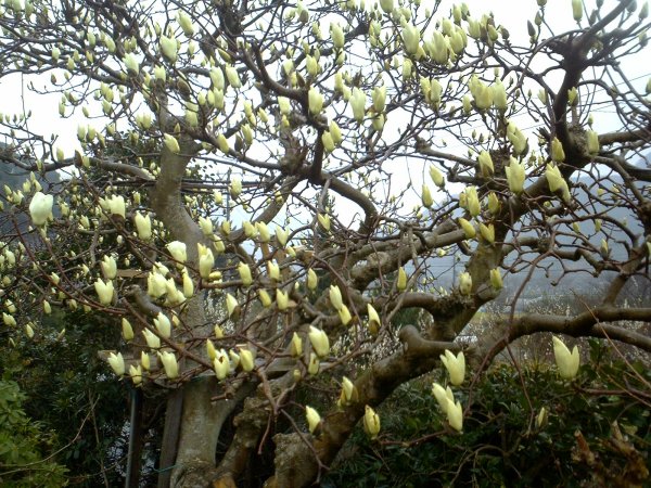 - 冬の間ずっと毛のついたつぼみをしていたシロモクレンが、開花しはじめました。