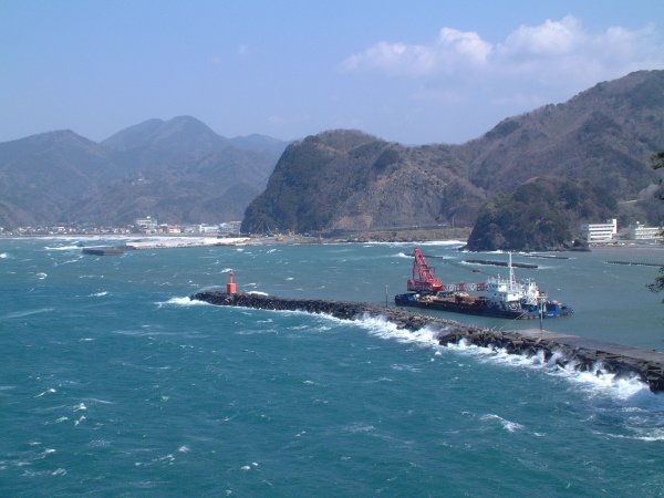 - 新港湾建設が進んでいます。1日から商工会で3月16日の防災船希望の体験乗船募集をしています。