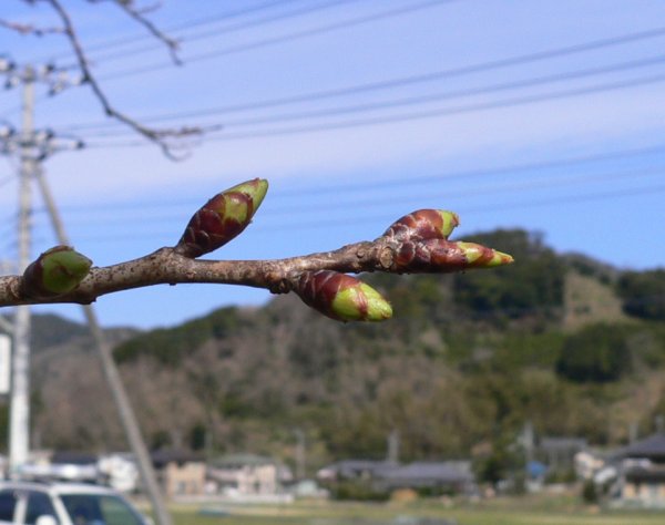 - 那賀バイパスの桜です。つぼみもいくらかふくらんできました。