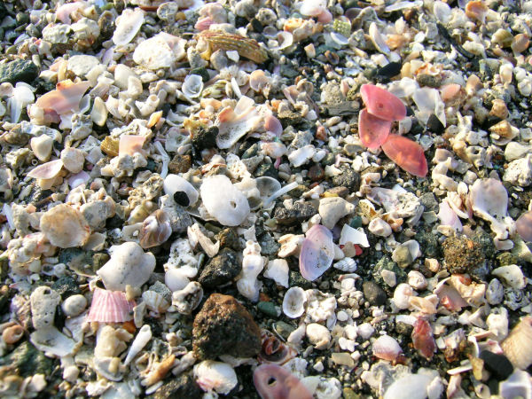 - 海岸にはまるで宝石箱をこぼしたように微小貝が打ち上げられていました。
