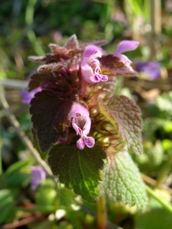 - 道端に目をやると、ヒメオドリコソウが見られます。 ホトケノザとあわせ、道ばたにピンク色の花が目を引きます。