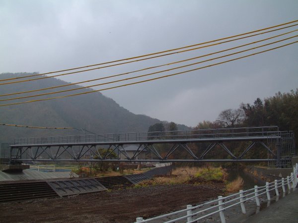 - 那賀川に水管橋が架かりました。三聖苑横の新水源から峰輪配水池に水を上げ、中川地区に給水します。