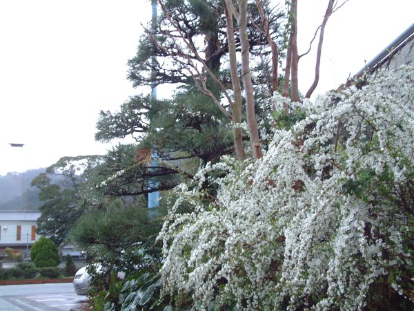 - 雪が降っているように見える、ユキヤナギが咲いています。
