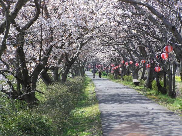 - 伏倉の那賀川土手では早咲きの桜でトンネルが出来ています。