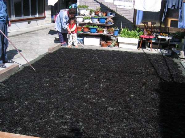 - 石部地区では、家庭の庭先等でひじき干しが行われていました。