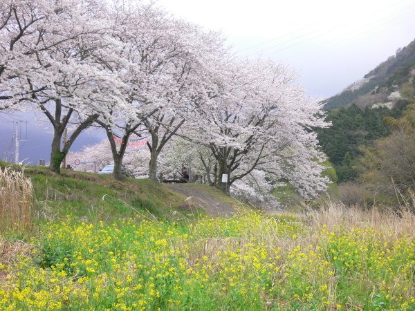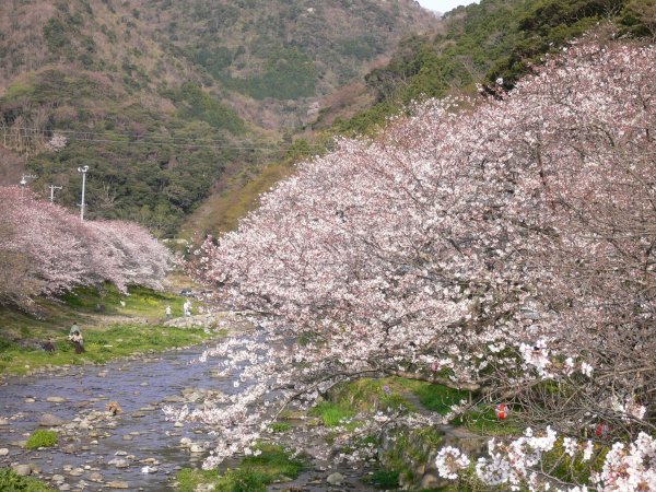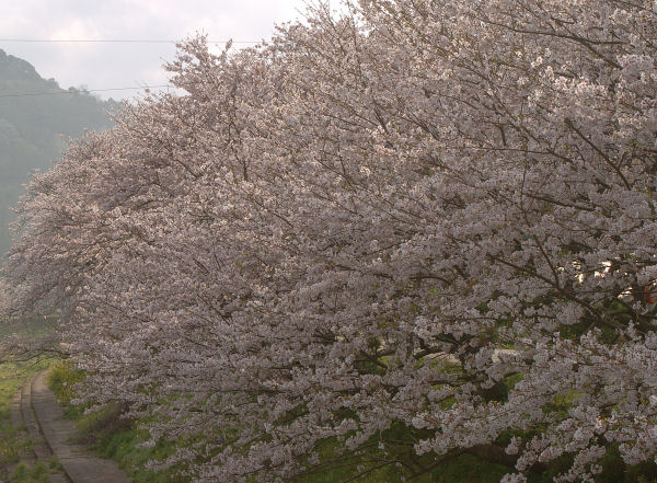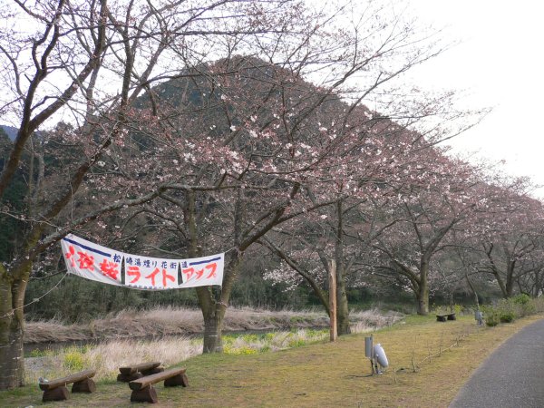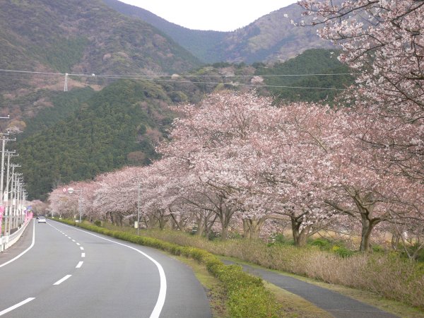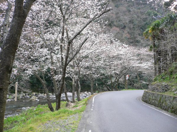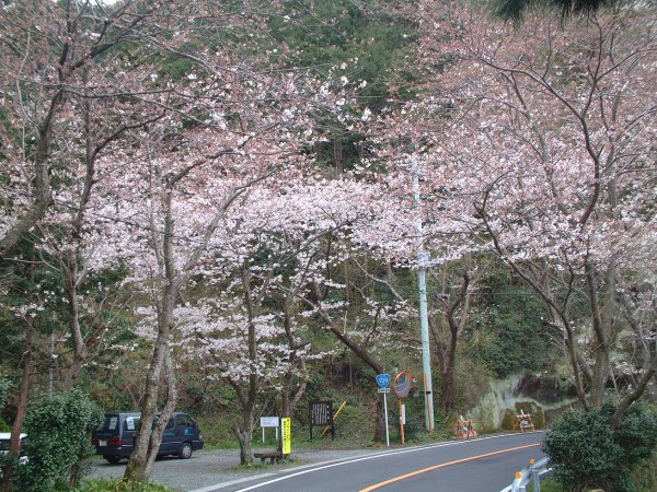 - 室岩洞付近の桜です。 このあたりは松崎町内でも早く咲き、桜のトンネルができます。