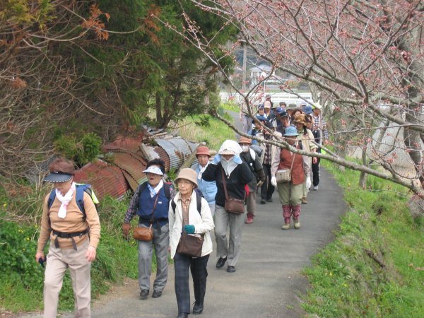 - 今年は桜の開花が遅れ、まだ開花したばかりの桜並木の下を参加者達は歩きました。