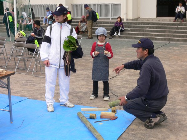 - 会場内では、松崎21世紀フォーラムによる竹細工体験コーナーが設けられ、ゴール後の参加者達の注目を集めていました。