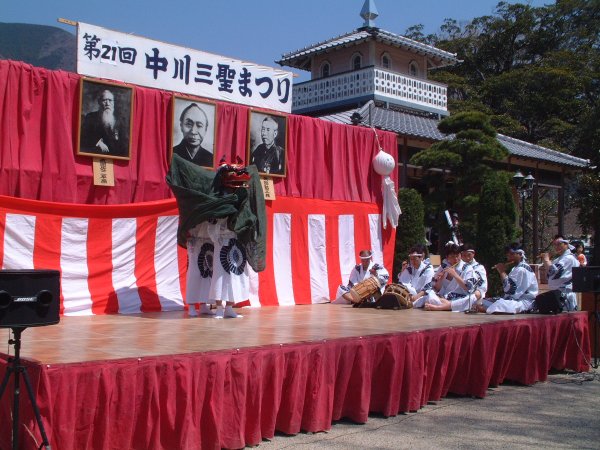- 第21回中川三聖まつりが晴天の中「道の駅花の三聖苑」で行われ、中小OBよさこいそーらんや峰輪神楽等が郷土芸能大会で披露されました。