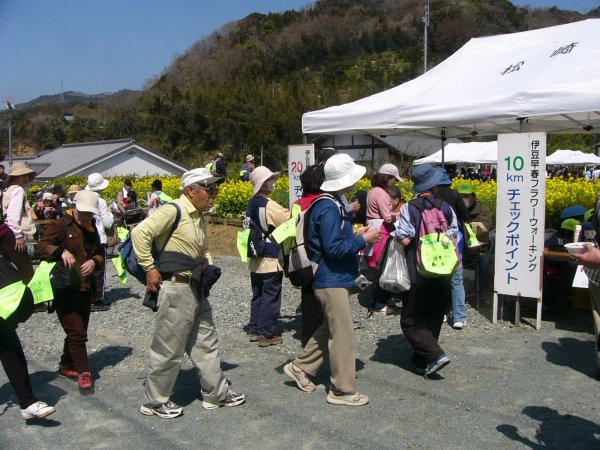 - ツーデーマーチが本日も行われ、松崎中学の高木さん・福本さんがボランティアで運営の手伝いをしました。中川三聖まつりへのコースもあり、三聖苑は多くの人で賑わいました。