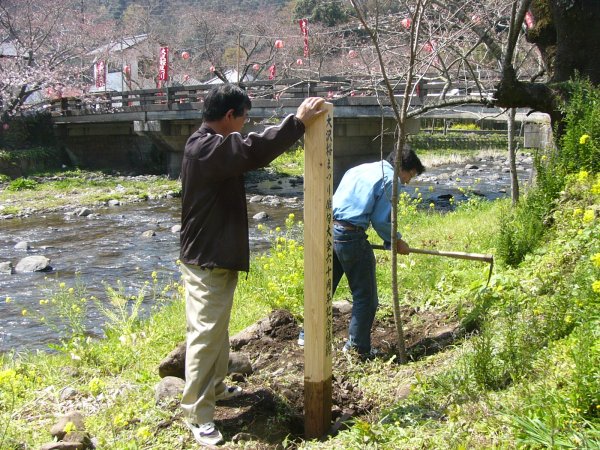 - 大沢桜まつり俳句大会60周年記念で桜を那賀川土手に記念植樹しました。