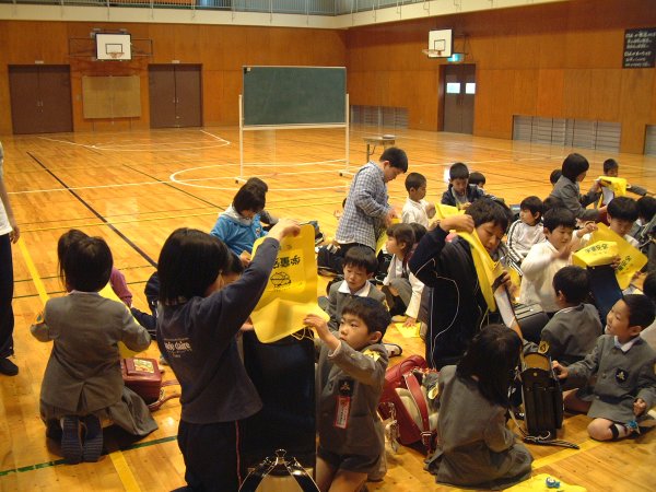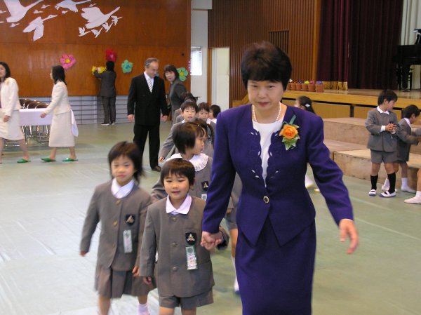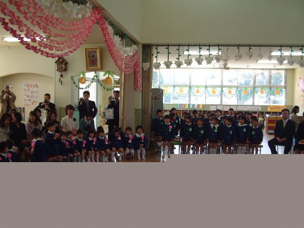 - 町内幼稚園で入園式が行なわれました。歌などを唄い、新入園児をみんなで歓迎しました。