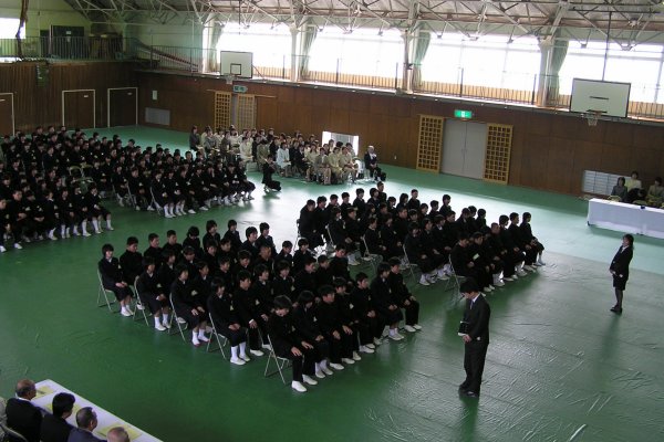 - 松崎中学校でも入学式が行なわれ、70名が入学しました。