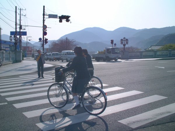 - 春の全国交通安全運動の一環で町内通学路で一斉街頭指導が行なわれました。