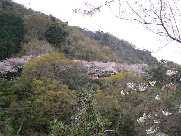 - しばらく雨が続いていましたが、午後からはあがりました。展望台からは、江奈門野線の桜並木が望めます。
