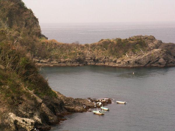 - 国道136号「富士見彫刻ライン」から海を見下ろすと、道部地区のヒジキ狩りが行われていました。