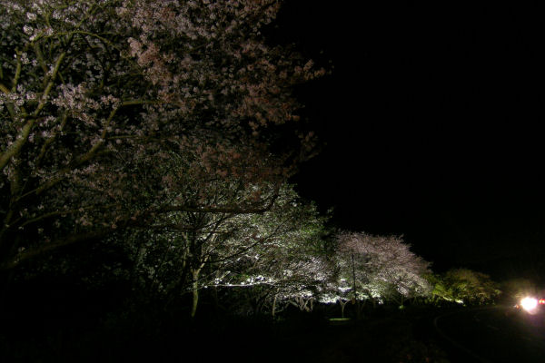 - 那賀バイパスでは、約900mの区間でライトアップが行われています。昼間見る桜もきれいですが、夜は1段と美しさが増します。