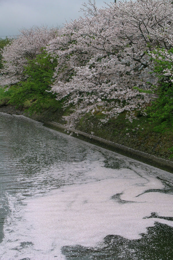 - 今日は雨が降り続き、時より激しく降りました。海には桜の散った花びらが流れてきていました。