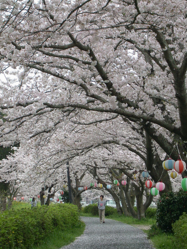 - 那賀川沿い、花のジョギングコースの様子です。 桜のトンネルが見事です。