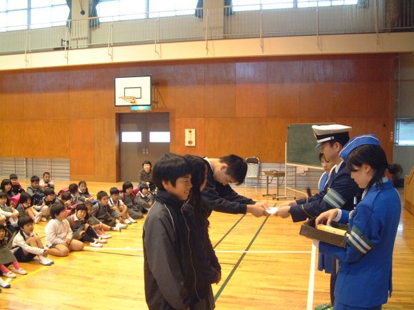 - 町内小学校で4月から6年生になった児童に交通安全リーダーを委嘱しました。下級生への交通安全の模範となります。
