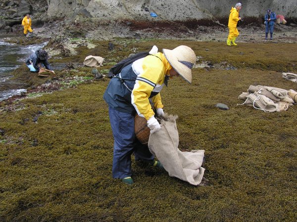 - 岩場にはりついているのが、ひじきです。約6.6t収穫しました。