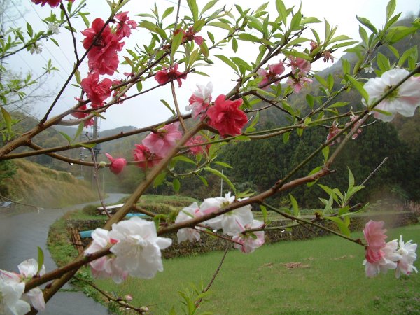 - 桃が白や赤の色を咲かせていました。
