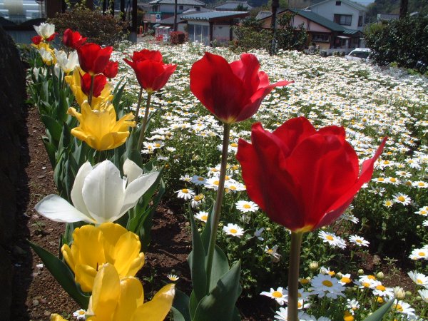 - 建久寺花壇のチューリップが風に揺られながら咲いていました。