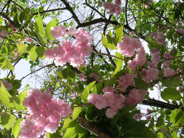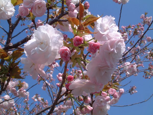 - 花びらがいくつにも重なりあった 八重桜が咲いていました。