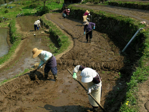 - 今日石部棚田では畦塗りが行われていました。 クリックするとその様子が見られます。