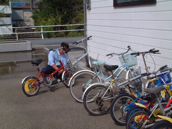 - 交通安全運動の一環で小学生の自転車点検が行なわれ、ブレーキの効きなどを点検しました。