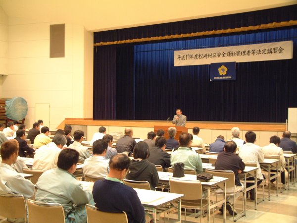 - 環境センター文化ホールで安全管理者等講習会が開催され、交通安全等事業主への講習をしました。
