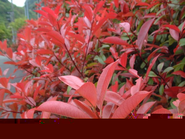 - とても鮮やかな赤色の新芽が目を引くカナメモチです。