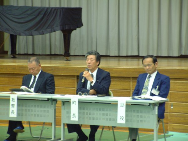 - 町内で町政懇談会を行なっています。昨晩は松崎中学校で行なわれ、町民の方の町政への要望等が語られ、町長はじめ課長以上の職員で意見交換しています。