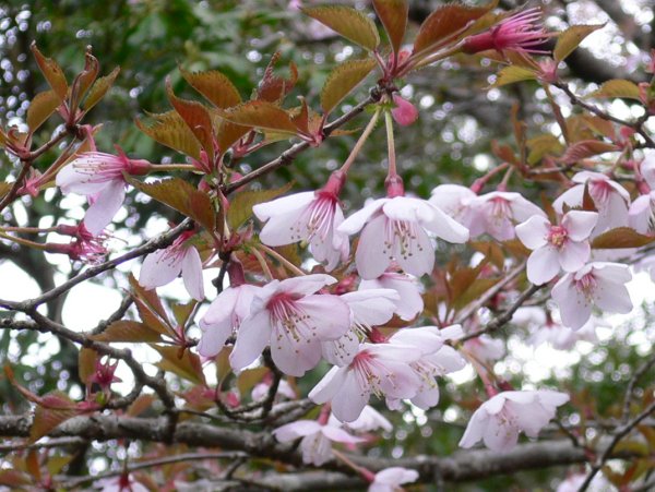 - 長九郎山中腹のマメザクラは散ってしまいましたが、山頂付近のマメザクラは見頃となっています。