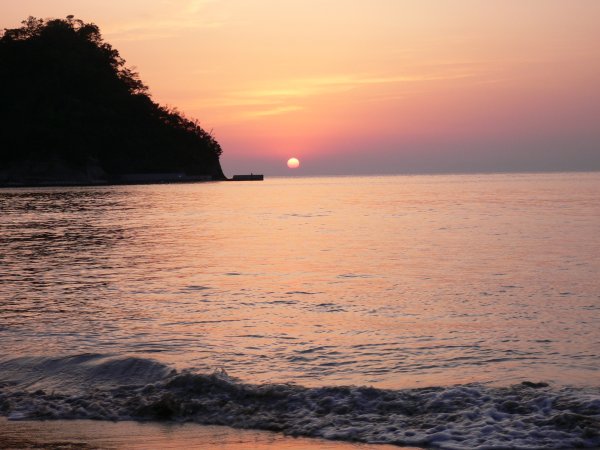 - 岩地海岸から見た夕陽です。