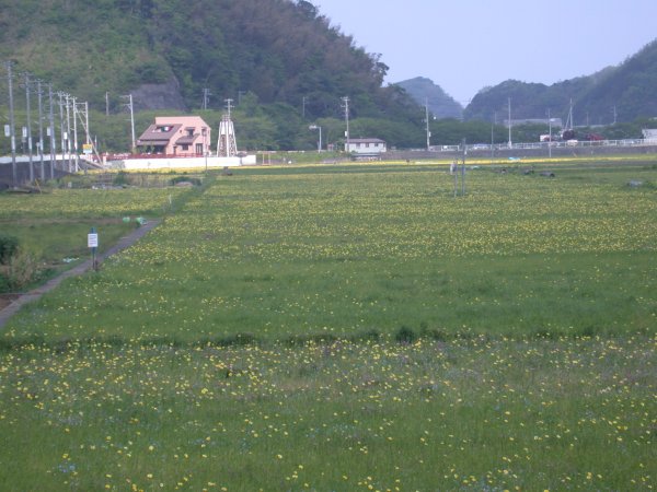 - 岩科中村地区のレンゲ畑の写真です。畑の中は、蜜を吸いにきているミツバチがたくさんいました。