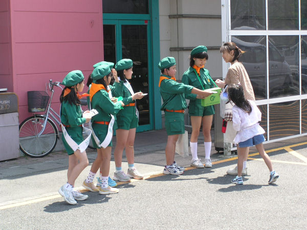 - 入団式を終え、みどりの少年団活動として緑の羽募金活動を行いました。