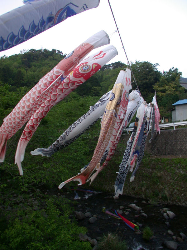 - 岩科八木山区では、毎年恒例のこいのぼりがお目見えしました。 今年は岩科川をまたぐように泳ぐこいのぼりに加え、清流の中を泳ぐこいのぼりも見られました。 すてきな演出です。