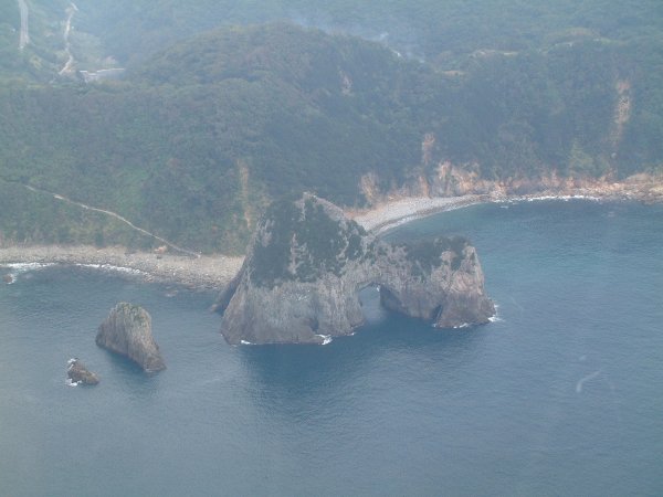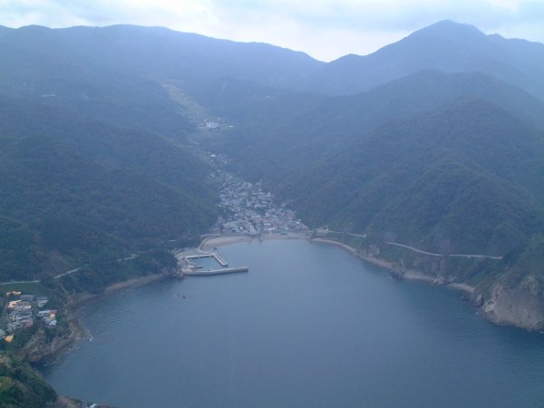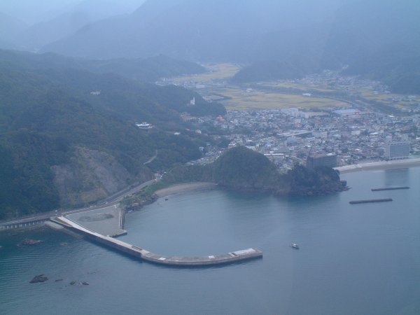 - 県防災ヘリコプターによる防災拠点、危険区域等の実態調査が行われました。写真は松崎町外部にある松崎新港湾で防災拠点として重要な役割が望まれています。
