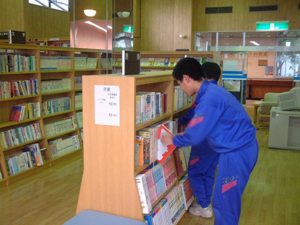 - 松崎町図書館での受付け、整理事務などを体験しました。