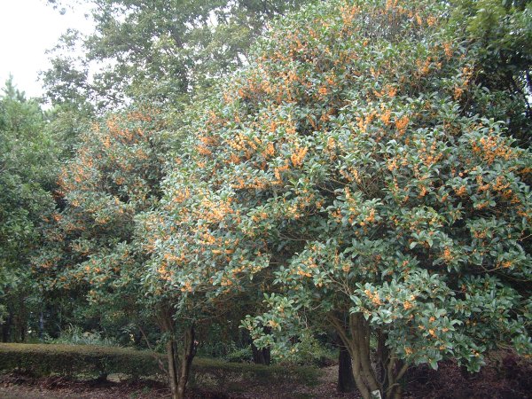 - キンモクセイの花が開花し牛原山広場に甘い香りを漂わせています。