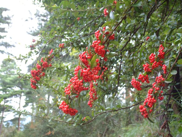 - 真っ赤なピラカンサの実がつきはじめていました。小鳥などがこの実を食べに来ます。