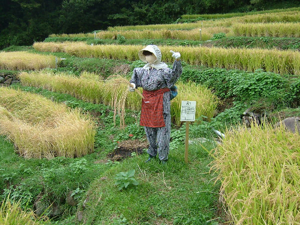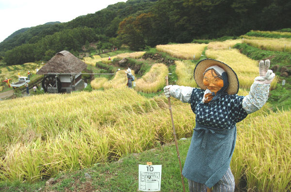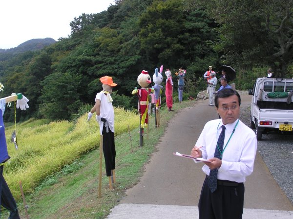 - 石部棚田に飾られたかかし達。 ほんの一部を写真で紹介しますが、まるで人間と見間違うようなリアルなものまで・・・ これではスズメも近寄れません。