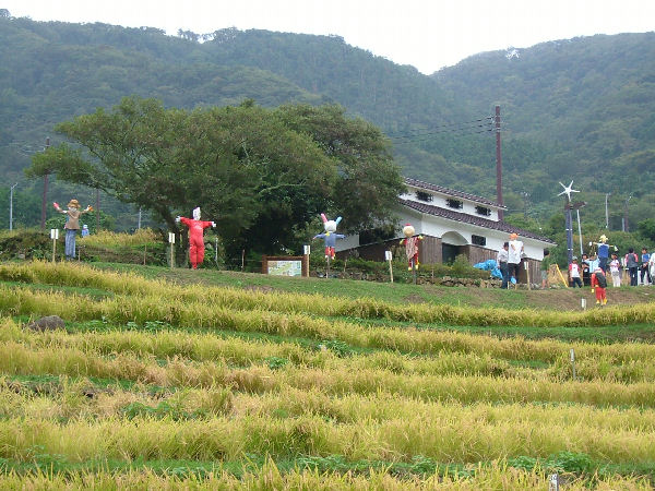 - 石部棚田では、収穫祭の後案山子コンテスト表彰式が行われました。 棚田を飾っているユニークですてきな作品の制作者の方々が参加し、表彰を受けました。