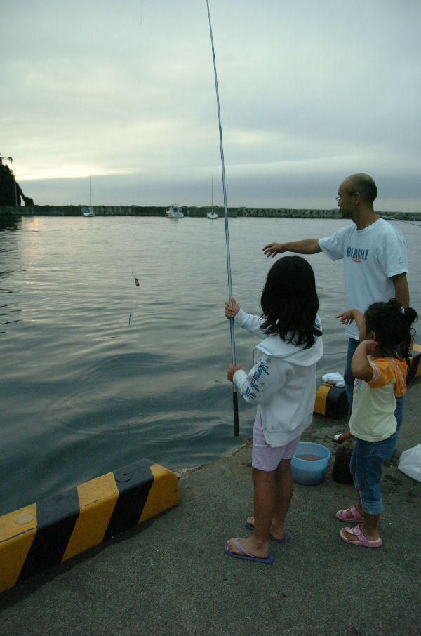 - 松崎港では、夕まづめをねらい、鰯釣りを楽しむ家族連れが見られます。