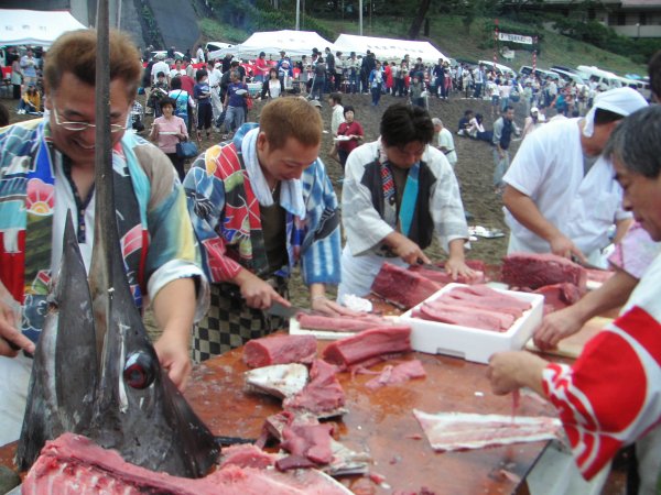 - 雲見海岸で海賊料理まつりが開催されました。まぐろ解体など行われ、多くの料理に大勢の方が集まりました。